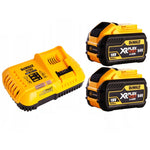 Pakke som inneholder Hurtigladeren Dewalt DCB118 og 2 stk. Dewalt Flexvolt 18/54V XR 9.0Ah-batterier.