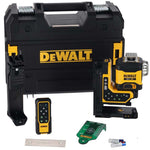 Dewalt 18V XR Linjelaser Med Fjernkontroll 3x360° Grader DCLE34035B er en høy synlighet 3 x 360° laser med grønn diode og med full batterikompatibilitet over 18V XR-batterisystemet. Sikrer bedre strålesynlighet på arbeidsplassen. 80 M / 100 M med detektor. Finjusterende motorisert fjernkontroll. Vertikal 90 mm og horisontal 174 graders rotasjon. 3-trinns bryter. Pendellås / Manuell helling / Selvnivellering/.