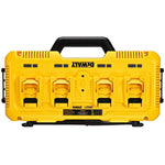 Dewalt Hurtiglader DCB104 kan lade opp til 4 batterier samtidig (lader 12V, 18V og 54V batterier). Hurtigladeren lader et 5,0Ah 18V XR batteri på 50 minutter og et 9,0Ah 54V XR FLEXVOLT batteri på 75 minutter. Den er kompatibel med DEWALT ToughSystem oppbevaringssystem og kan monteres på vegg.