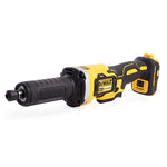 Dewalt 18V XR Rettsliper DCG426N med børsteløs motor og maksimal skivediameter på 38 mm. Utstyrt med 3-trinns hurtigvalgknapp for regulerbar hastighet, noe som gir bedre kontroll.