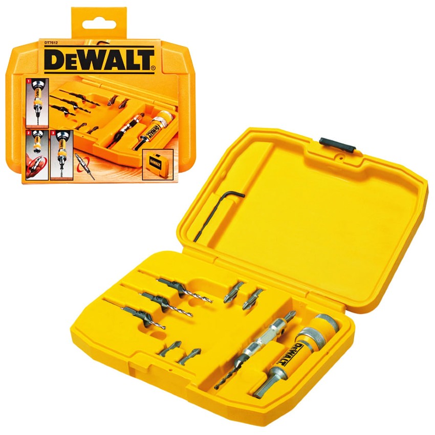 Dewalt Flipdrive Sett DT7612 er et flipdrive-sett i 12 deler til forboring og forsenkning. Raskt bytte mellom forboring, forsenkning og skrutrekking. Passer de fleste bormaskiner.