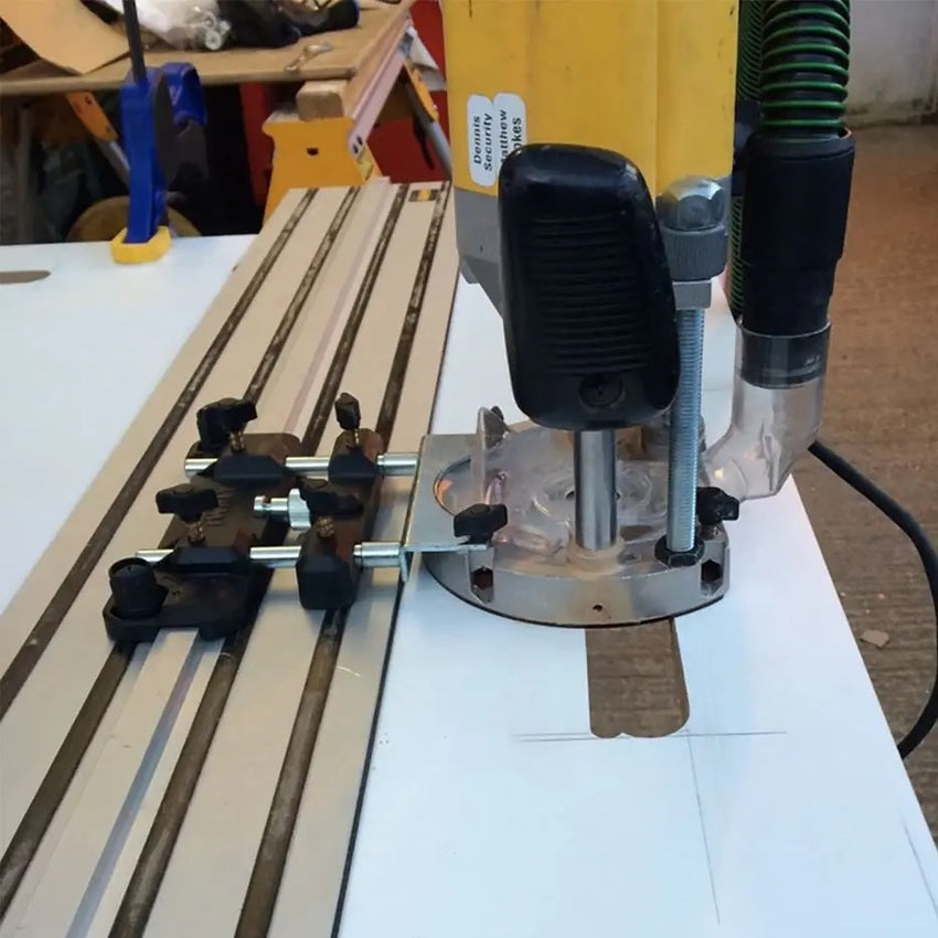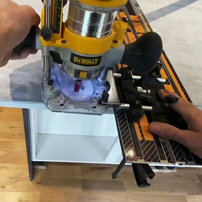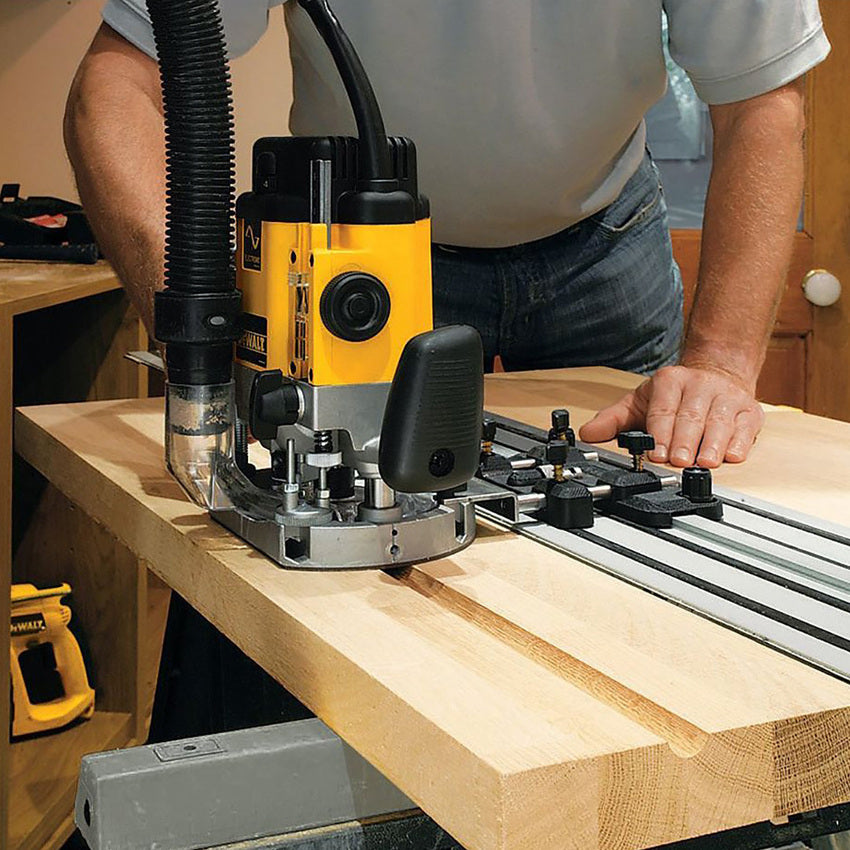 Lar deg bruke fres sammen med Dewalt-Styreskinner for å lage perfekte, rette linjer.