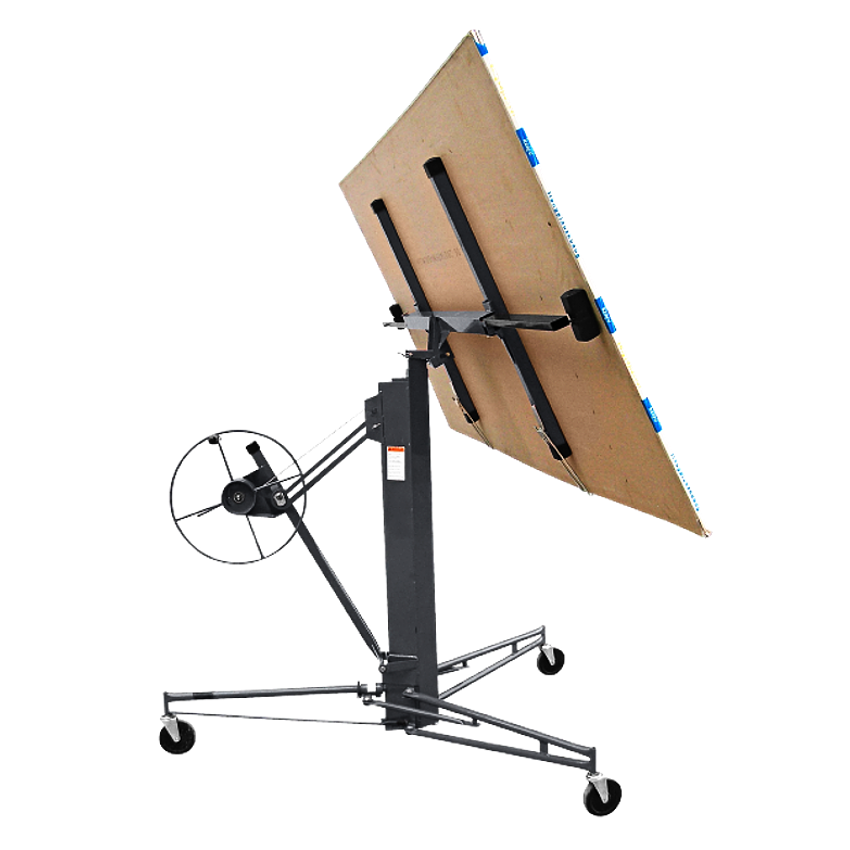 Probuilder gipsheis vinkel m/wire til montering av gips- og andre takplater. Kan justeres i vinkel, demonteres og monteres. Fungerer etter teleskopprinsippet. Skråstillt for enkel lasting av plater og montering på vegger. Til gipsplater størrelse 122x488 cm. Maks belastning 68 kg. Lastehøyde 120 cm. Maks høyde 330 cm.