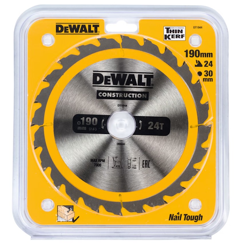 Ekstremt robust og solid konstruert sirkelsagklinge Dewalt DT1944 for de tøffeste bruksområdene. Klingen er perfekt for grovt snekkerarbeid, både for tre og komposittmateriale.